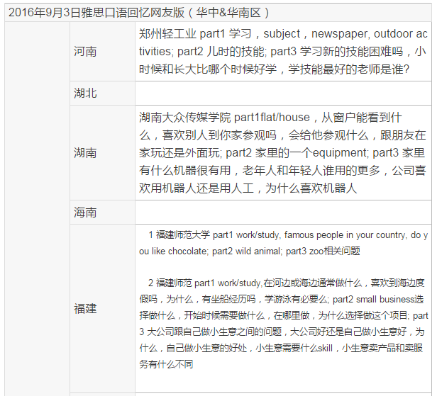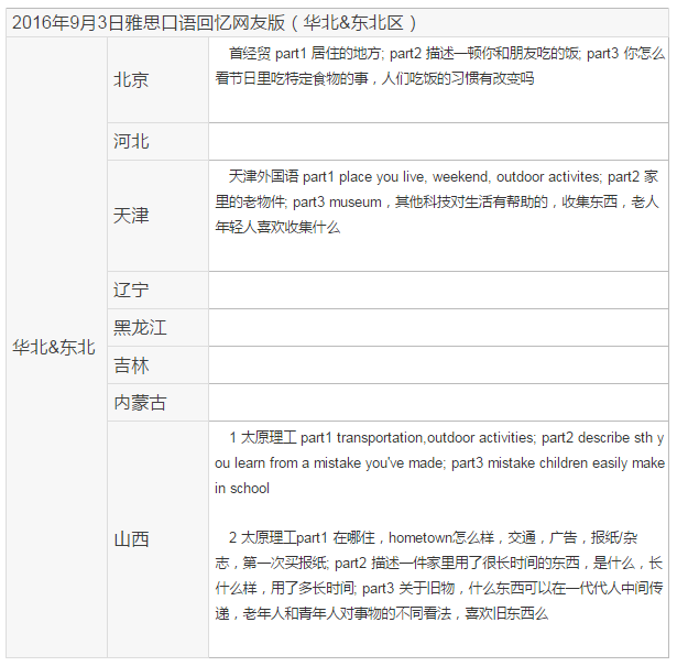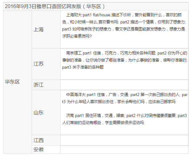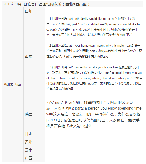 以下是9月3日雅思口语考试真题回忆整理,希望对大家有所帮助。