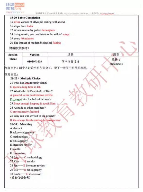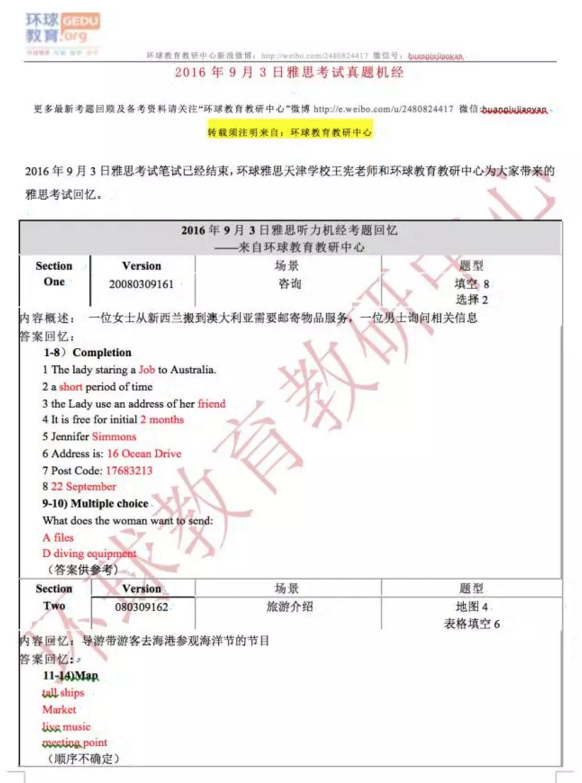 环球教育教研中心的老师此次为大家来“2016年9月3日雅思听力考试真题回忆+答案”,希望对大家有所帮助。