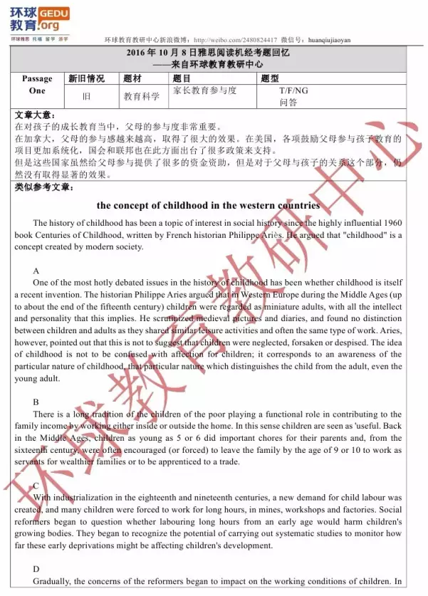 环球教育教研中心的老师此次为大家来“2016年10月8日雅思阅读考试真题回忆+答案”,希望对大家有所帮助。