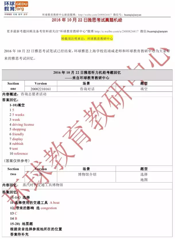 环球教育教研中心的老师此次为大家来“2016年10月22日雅思听力考试真题回忆+答案”,希望对大家有所帮助。