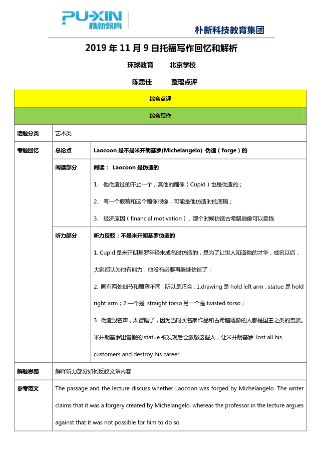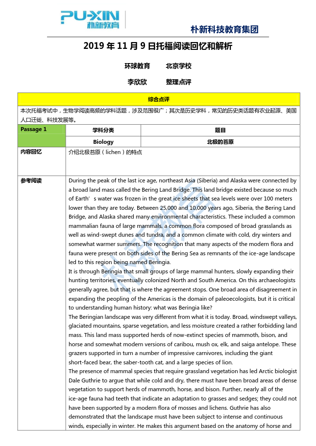 环球教育教研中心此次为大家整理了2019年11月9日托福考题内容:听、说、读、写回忆和解析,希望能帮大家更上一层楼。